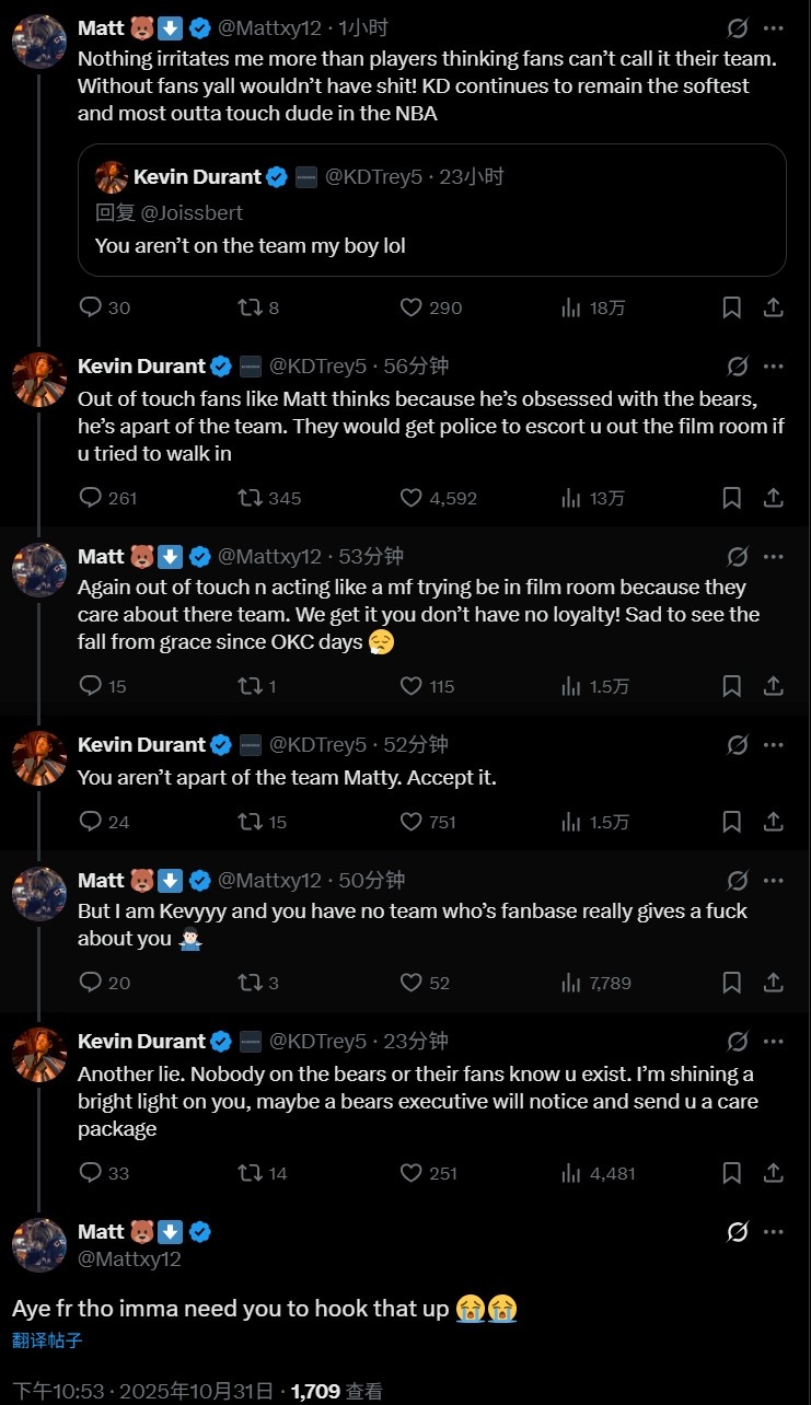 10月31日訊 今日杜蘭特繼續(xù)在社媒和網(wǎng)友對(duì)線。
