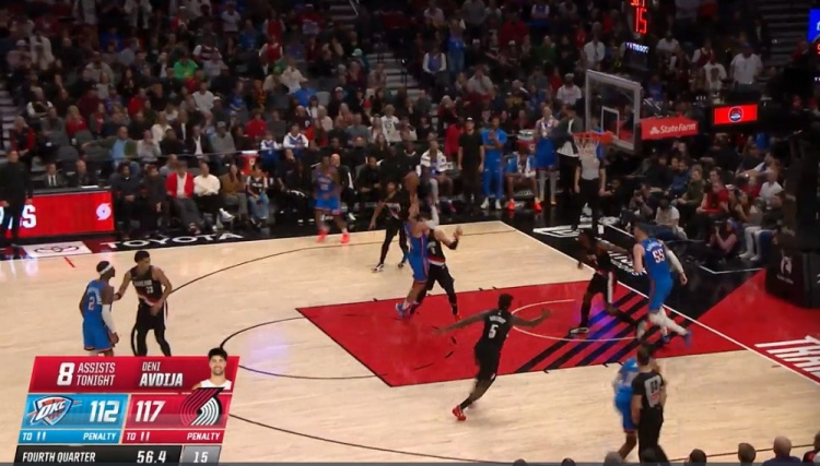 1、比賽剩余55.1秒時,阿杰伊·米切爾上籃,吹罰了阿夫迪亞犯規(guī),雷霆獲得了兩次罰球。