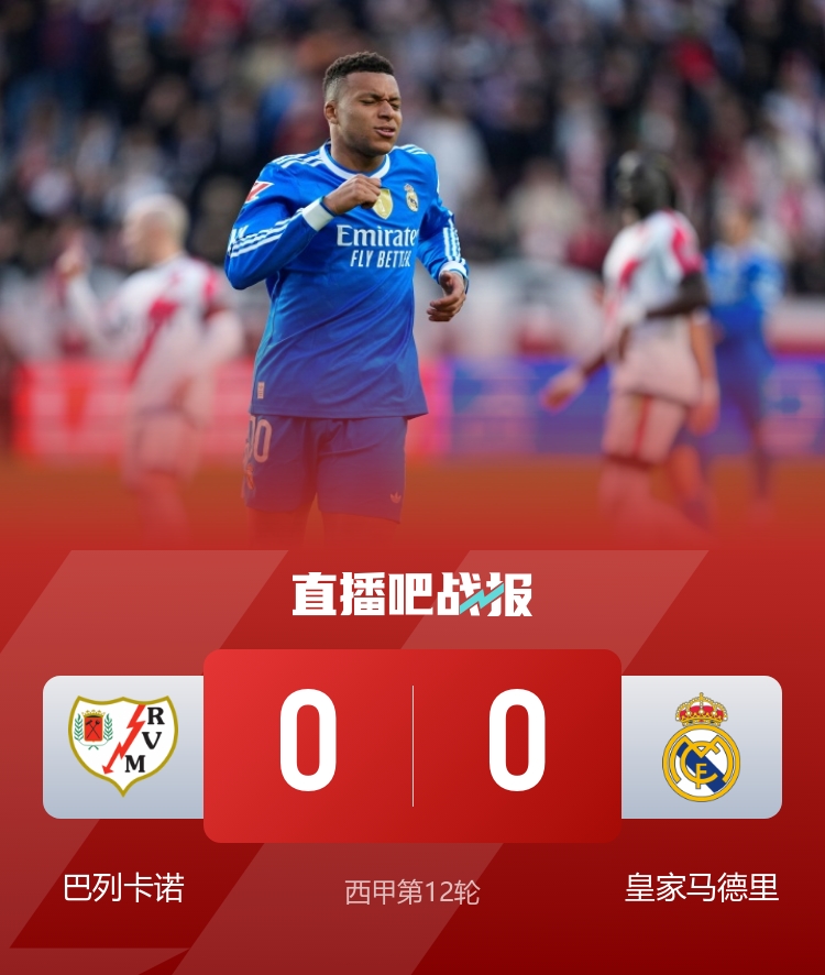 一視同仁!巴列卡諾主場(chǎng)0-0皇馬、1-1巴薩