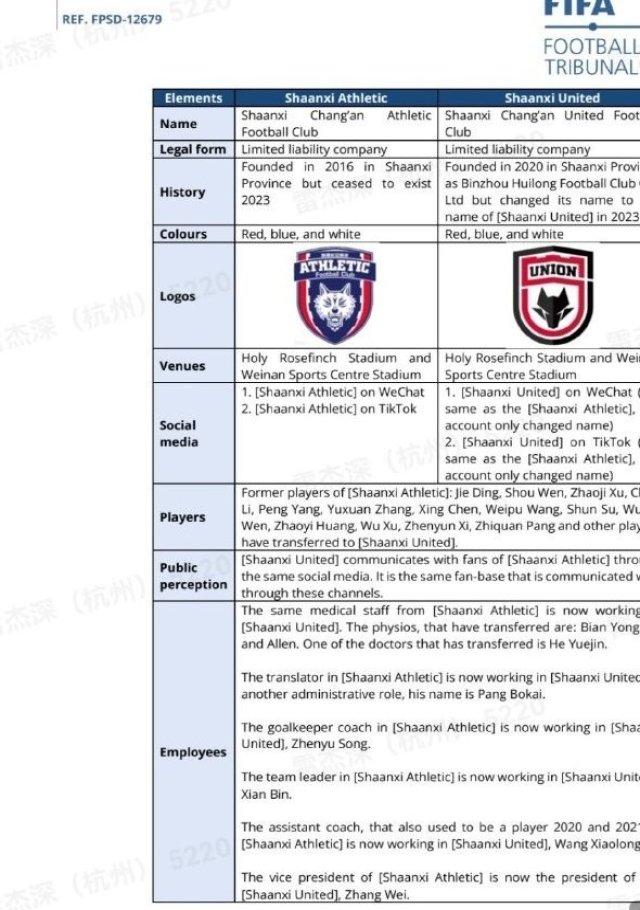陜西聯(lián)合在應(yīng)對(duì)訴訟時(shí)提出:俱樂部2020年就已經(jīng)成立,并非是2023年才成立;前身是彬州輝龍,與長(zhǎng)安競(jìng)技也不是同一個(gè)法人實(shí)體。兩家俱樂部隊(duì)徽完全不同,長(zhǎng)安競(jìng)技俱樂部也從未使用過“聯(lián)合”的名字;使用原長(zhǎng)安競(jìng)技的球員,僅僅是出于競(jìng)技層面的需要。而且長(zhǎng)安競(jìng)技尚未破產(chǎn),球員仍可對(duì)其起訴,而不是來起訴陜西聯(lián)合。