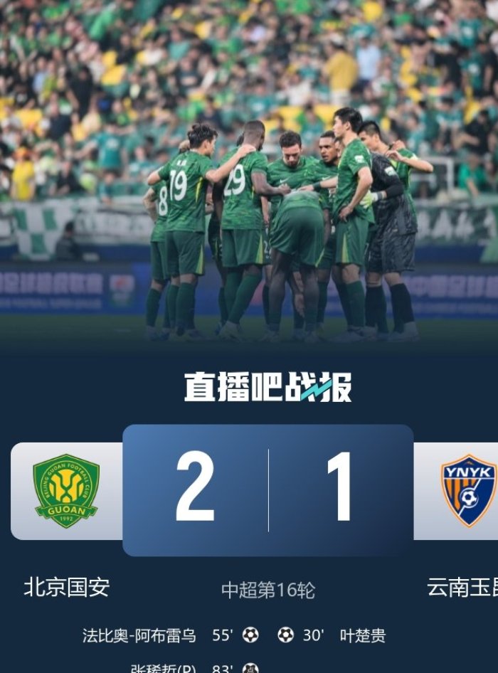 6月30日訊 北京時(shí)間19:35,中超第16輪北京國(guó)安vs云南玉昆,比賽在北京工人體育場(chǎng)打響!上半場(chǎng),葉楚貴幫助客場(chǎng)作戰(zhàn)的云南玉昆取得領(lǐng)先!法比奧禁區(qū)倒地獲得點(diǎn)球,隨后被VAR取消!下半場(chǎng),張玉寧頭球擺渡,阿布雷烏扳平比分!張玉寧隨后又制造點(diǎn)球!張稀哲主罰命中!