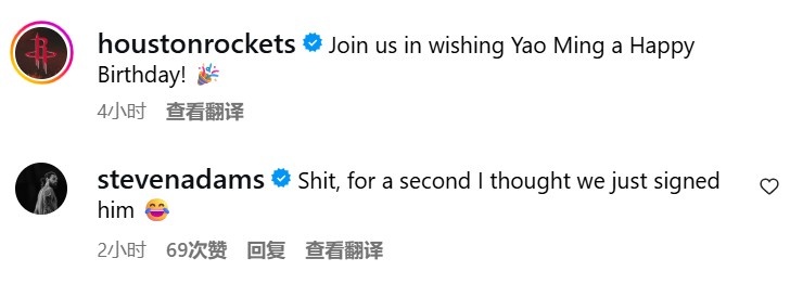 火箭官方祝姚明生日快樂!亞當(dāng)斯:我剛才還以為我們簽下他了