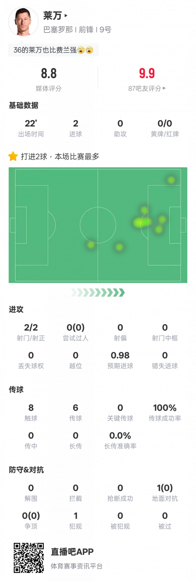 萊萬本場比賽數(shù)據(jù):