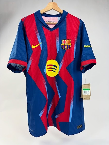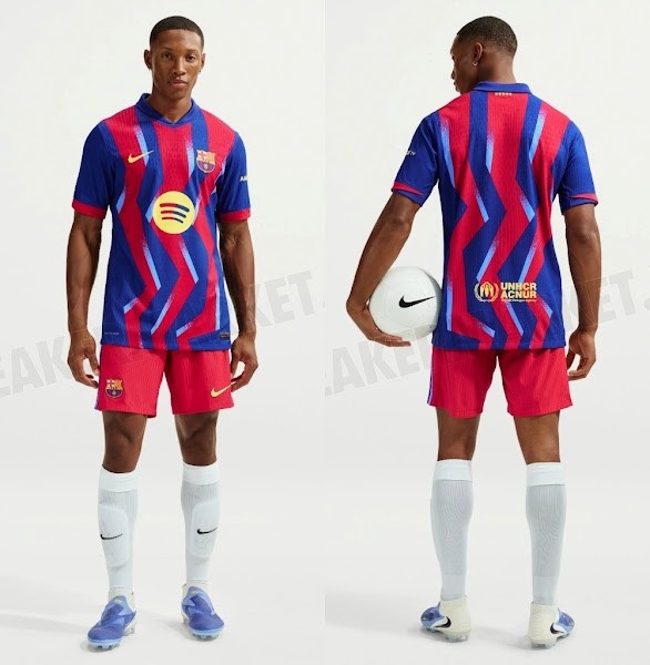 與20年前的經(jīng)典藍(lán)紅條紋不同,巴塞羅那2025-26賽季第四球衣采用了藍(lán)色和紅色的鋸齒形條紋,并帶有淺藍(lán)色的圖形元素。