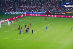 淮安隊上半場險些擴大比分,定位球破門被吹越位